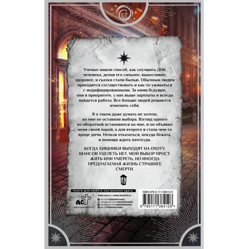 Ученые нашли способ, как улучшить ДНК человека, делая его сильнее, выносливее, здоровее, и сказки стали былью. Обычным людям приходится сосуществовать и как-то уживаться с модифицированными. За ними будущее, они в приоритете, у них выше зарплаты и всегда найдется работа. Все больше людей решаются изменить себя. Я о таком даже думать не хотела, но мне не оставили выбора. Взгляд одного из оборотней остановился на мне, и он объявил меня своей парой, а для второго я стала чем-то вроде дичи. Нельзя отказаться, некуда бежать, и помощи ждать неоткуда. Когда хищники выходят на охоту, шансов уцелеть нет. Мой выбор прост: жить или умереть, но иногда предлагаемая жизнь страшнее смерти.