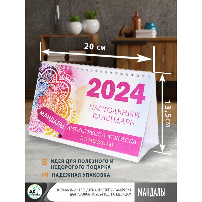 Хотите структурировать свое время, да еще и проявить творческий потенциал? Настольный перекидной календарь-домик - идеальный способ это сделать! Сочетание календарной сетки на месяц и контурных изображений для раскрашивания (арт-релакс) позволят вам не только никогда не забывать о важных событиях, но и отвлечься во время телефонных переговоров. Это удобный органайзер для офисных работников и людей, которым нужен календарь на месяц. Забудьте о скучных и однообразных календарях - порадуйте себя и своих коллег экспериментальным подходом к организации времени!