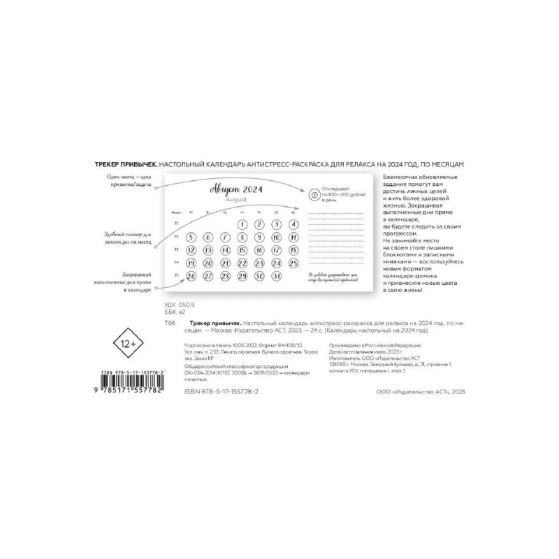 Характеристики Трекер привычек. Настольный календарь антистресс-раскраска д