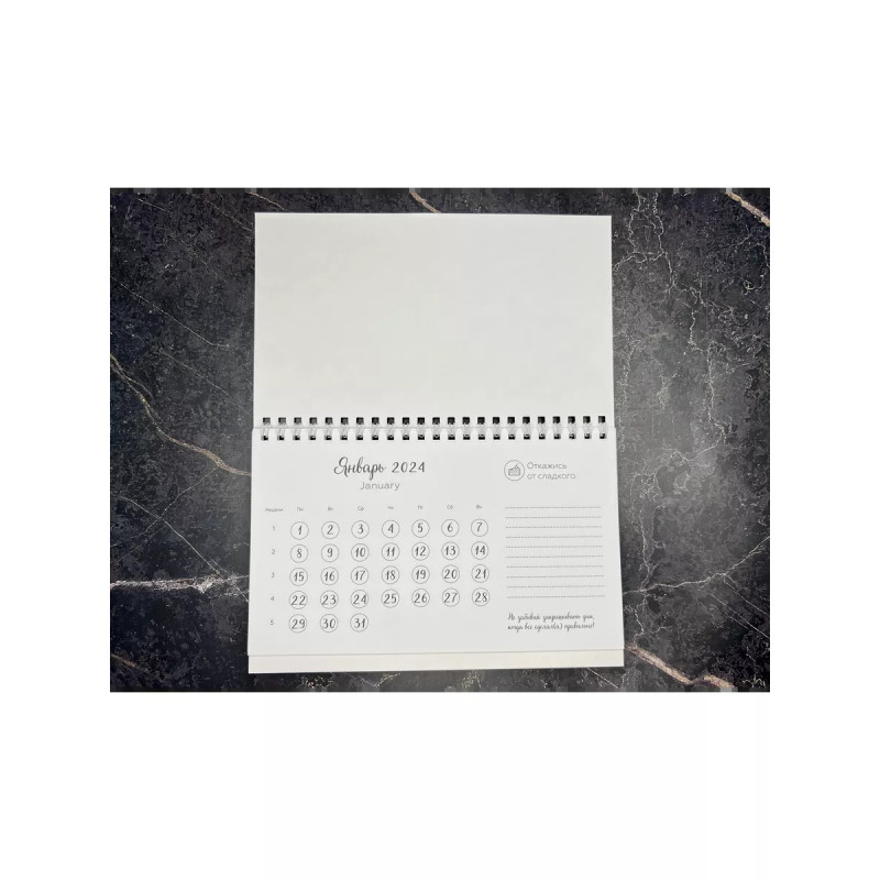 Хотите легко освоить новые полезные привычки или избавиться от вредных? Работаете в офисе и нуждаетесь в удобном календаре под рукой? Новый экспериментальный формат настольного перекидного календаря-домика точно для вас! Ежемесячно обновляемые задания помогут вам достичь личных целей и жить более здоровой жизнью. Закрашивая выполненные дни прямо в календаре, вы будете следить за своим прогрессом. Не занимайте место на своем столе лишними блокнотами и записными книжками - воспользуйтесь новым форматом календаря-домика и привнесите новые цвета в свою жизнь!