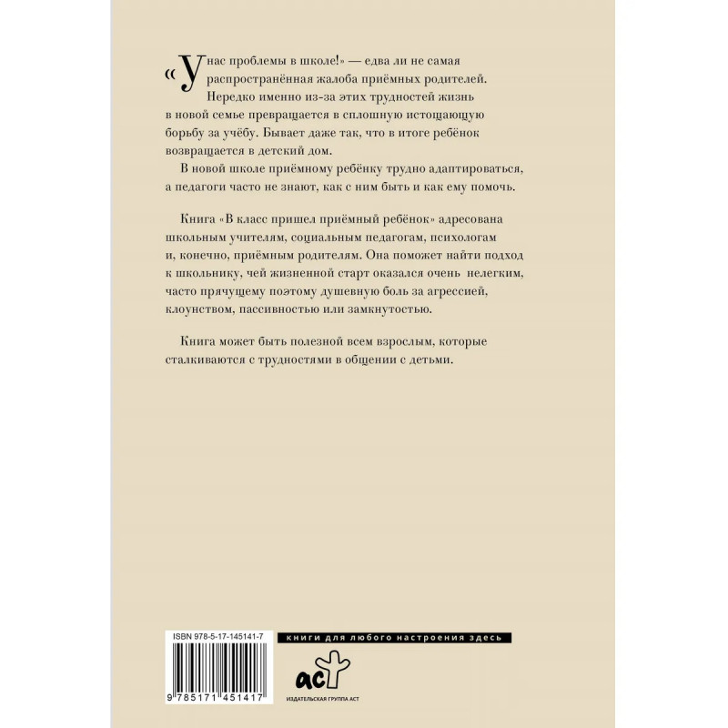 "У нас проблемы в школе!" едва ли не самая распространенная жалоба приемных родителей. Нередко именно из-за этих трудностей жизнь в новой семье превращается в сплошную истощающую борьбу за учебу. Бывает даже так, что в итоге ребенок возвращается в детский дом. В новой школе приемному ребенку трудно адаптироваться, а педагоги часто не знают, как с ним быть и как ему помочь. Книга "В класс пришел приемный ребенок" адресована школьным учителям, социальным педагогам, психологам и, конечно, приемным родителям. Она поможет найти подход к школьнику, чей жизненный старт оказался очень нелегким, и часто прячущему поэтому душевную боль за агрессией, клоунством, пассивностью или замкнутостью. Книга может быть полезной всем взрослым, которые сталкиваются с трудностями в общении с детьми.
