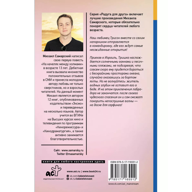 Морские приключения Трисона. Наш любимец Трисон вместе со своим напарником отправляется в командировку, где его ждут самые неожиданные открытия! Приехав в Израиль, Тришка наслаждается солнечными ваннами и песочными пляжами, не подозревая, что совсем скоро ему придется бороться с бескрайними просторами океана, случайно оказавшись за бортом катера. Но не волнуйтесь: житель водных глубин не оставит его в беде. И на этом приключения лабрадора не закончатся: после своего чудесного спасения он и сам сможет покорить непослушные волны - на доске для серфинга!