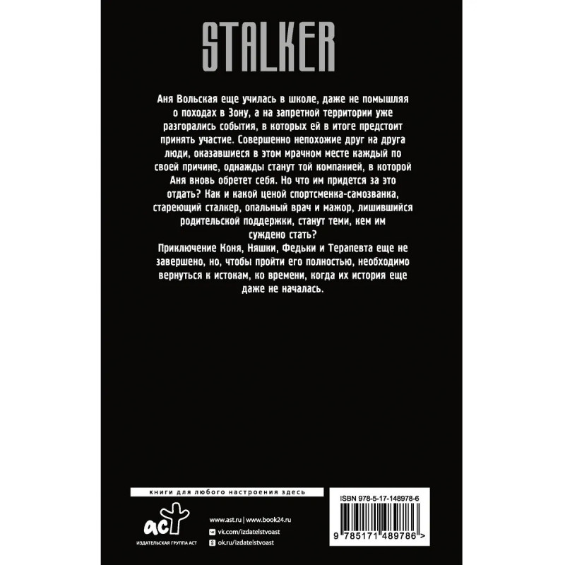 Аня Вольская еще училась в школе, даже не помышляя о походах в Зону, а на запретной территории уже разгорались события, в которых ей в итоге предстоит принять участие. Совершенно непохожие друг на друга люди, оказавшиеся в этом мрачном месте каждый по своей причине, однажды станут той компанией, в которой Аня вновь обретет себя. Но что им придется за это отдать? Как и какой ценой спортсменка-самозванка, стареющий сталкер, опальный врач и мажор, лишившийся родительской поддержки, станут теми, кем им суждено стать? Приключение Коня, Няшки, Федьки и Терапевта еще не завершено, но, чтобы пройти его полностью, необходимо вернуться к истокам, ко времени, когда их история еще даже не началась.
