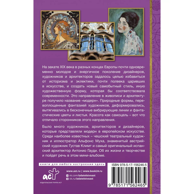 Модерн: Климт, Муха, Гауди. В конце XIX века в разных концах Европы молодое и энергичное поколение дизайнеров и художников, задалось целью избавиться от историзма и эклектики, почти полувека царивших в искусстве, и создать новый самобытный стиль, иную художественную форму, которая бы соответствовала современности. Эти попытки наиболее успешны были в области архитектуры, внутренней отделки помещений, в прикладном искусстве, в оформлении книги и искусстве плаката, и, конечно, - в живописи. Новое направление в искусстве получило название модерн. Было много художников, архитекторов и дизайнеров, которые представляли стиль модерн в европейском искусстве и искусстве Америки. Среди наиболее известных - чешский театральный художник и иллюстратор - Альфонс Муха, знаменитый австрийский художник - Густав Климт, и, пожалуй, самый оригинальный испанский архитектор - Антонио Гауди.