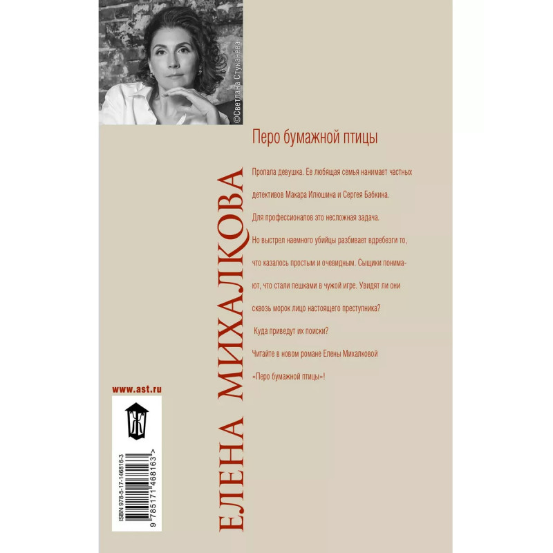 Перо бумажной птицы. - Новое расследование Сергея Бабкина и Макара Илюшина, самых харизматичных частных сыщиков нашего времени! - Тираж книг Елены Михалковой превысил 5 экземпляров! - Семейные тайны, скелеты в шкафу, родственники, всегда готовые тебя уничтожить... Всё, как любят ценители жанра психологический триллер! - Елена Михалкова знает, как держать интригу до последней страницы! - Лёгкий слог, живые герои и увлекательные диалоги - проводить вечер лучше всего за детективом Елены Михалковой!