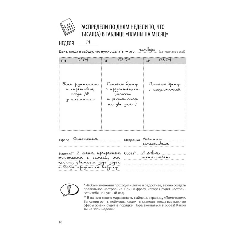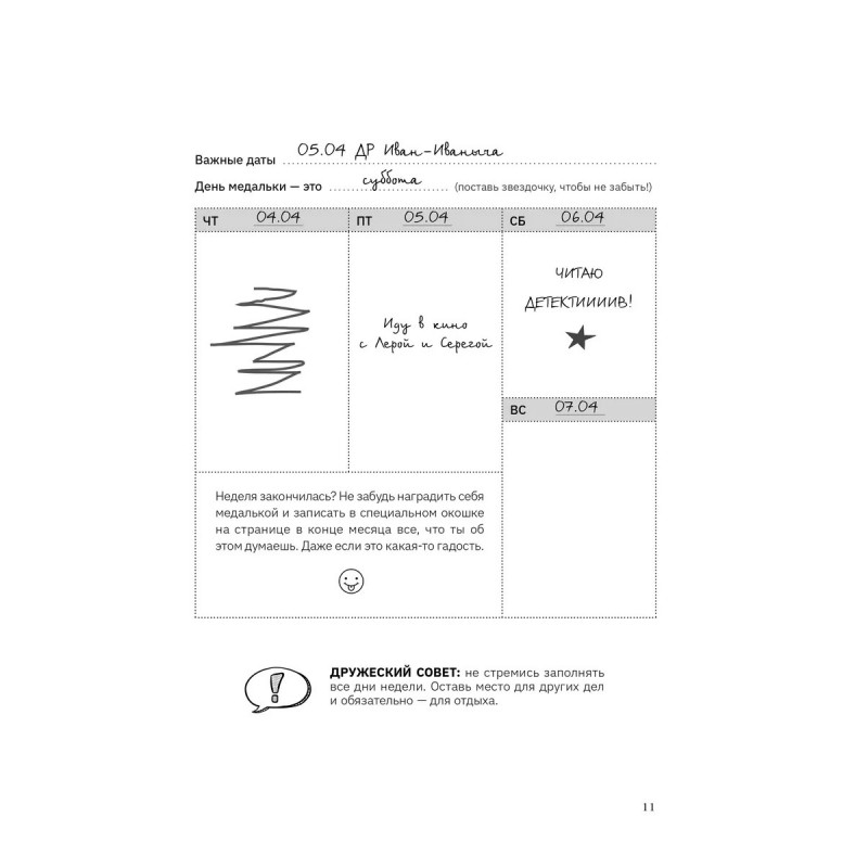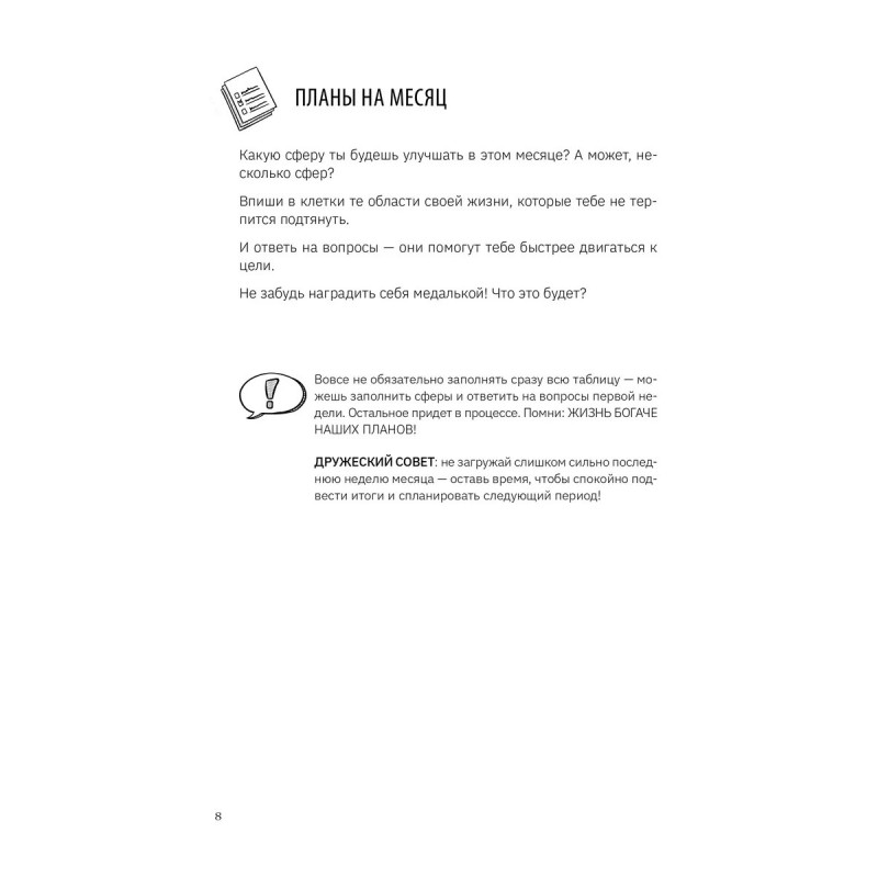 Быть в ресурсе и жить в балансе самые популярные слоганы последних лет! За этими словами стоит мечта: везде успевать, не выгореть, уделять внимание и семье, и работе, и здоровью. Получить все, сразу, ничем не жертвуя.Думаете, это невозможно?Больше полувека назад эксперт по саморазвитию Пол Дж. Майер разработал уникальную технику "Колесо баланса". Многие курсы по тайм-менеджменту, техники и методики достижения успеха построены именно на "Колесе баланса" Майера.Эта эффективная методика легла в основу уникального ежедневника. Все необходимое собрано вместе не надо искать и придумывать. Начать можно прямо сейчас не нужно ждать понедельника!Посмотрите на свою жизнь под новым углом, подарите этот ежедневник друзьям, родным, детям. Универсальная методика подходит абсолютно всем.