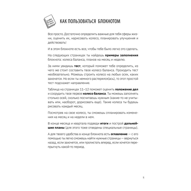 Характеристики Колесо баланса. Невыгораемый ежедневник.