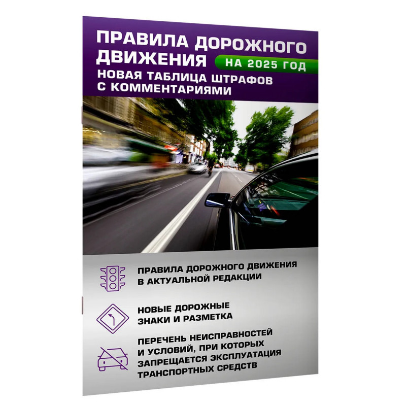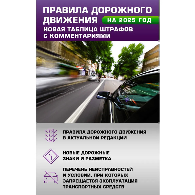 Издание содержит официальный текст Правил дорожного движения со всеми последними изменениями и дополнениями на 2025 год, включая новый перечень неисправностей и условий, при которых запрещается эксплуатация транспортных средств, а также удобную таблицу административных штрафов, предусмотренных за нарушение Правил дорожного движения. В цветной вкладке наглядно представлены все действующие дорожные знаки и разметка. Такая книга обязательно нужна в машине и начинающему, и опытному водителю. Издание учитывает все изменения, опубликованные в официальных источниках на момент подписания издания в печать.