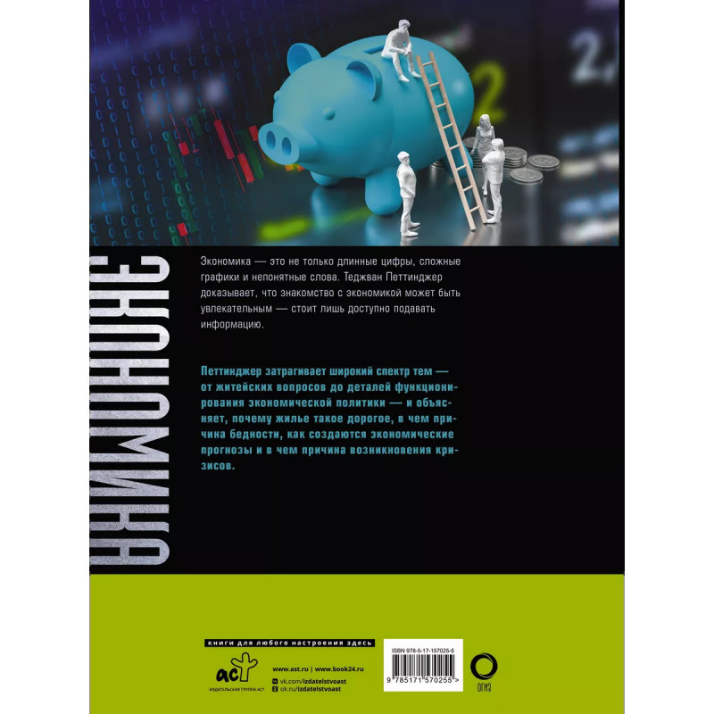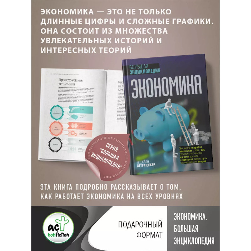 Экономика. Большая энциклопедия. Экономика - это не только длинные цифры и сложные графики. Она состоит из множества увлекательных историй и интересных теорий. Эта книга подробно рассказывает о том, как работает экономика на всех уровнях. Она объясняет, почему жилье такое дорогое, в чем причина бедности, как создаются экономические прогнозы, раскрывая самую суть экономических теорий. Возможно, мысли Адама Смита, Карла Маркса, Джона Кейнса и многих других помогут вам по-новому взглянуть на мир денег и понять его суть.