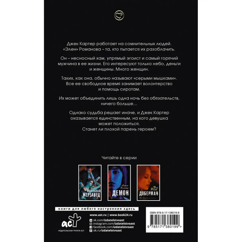Джек Картер работает на сомнительных людей. "Элен" Романова та, кто пытается их разоблачить. Он несносный хам, упрямый эгоист и самый горячий мужчина в ее жизни. Его интересуют только небо, деньги и женщины. Много женщин. Таких, как она, обычно называют "серыми мышками". Все ее свободное время занимает волонтерство и помощь сиротам. Их может объединить лишь одна ночь без обязательств, ничего больше Однако судьба решает иначе, и Джек Картер оказывается единственным, на кого девушка может положиться. Станет ли пл.оxой парень героем?