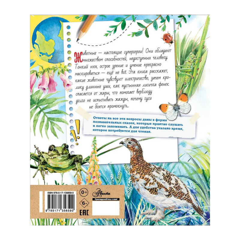 Говорят, что один ребёнок может задать столько вопросов, что ни один взрослый не ответит! И это правда. Серия книг "Почемучкины сказки" поможет взрослым нескучно отвечать многочисленные на "почему?" и "для чего?", проделывать интересные опыты и эксперименты и развивать в детях любознательность, ум, фантазию, любовь к живой природе. Из книги"Почемучкины сказки о животных" вы узнаете, какими суперспособностями обладают различные животные: собаки, кошки, хамелеоны, совы, акулы, лягушки и многие другие. Умеют ли гекконы бегать вверх тормашками? Как рыбы в воде электричество вырабатывают? Кто из птиц самый зоркий? Расскажет эта книга.