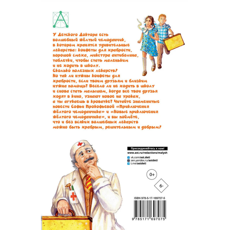 В книгу вошли две самые знаменитые сказочные повести зна- менитой писательницы Софьи Прокофьевой: "Приключения жёл- того чемоданчика" и "Новые приключения жёлтого чемоданчика". В сборнике даны классические тексты 1960-х годов. Обе повести рас- сказывают о смелости, об ответственности за свои поступки, о том, что не нужны никакие волшебные таблетки, чтобы совершать подви- ги и быть добрым и отзывчивым человеком! В книге великолепные иллюстрации Александры Лиукконен. Для среднего школьного возраста.