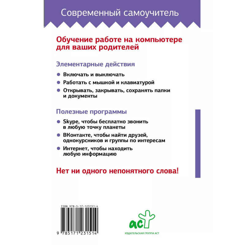 Компьютер с нуля. Самоучитель для тех, кто никогда не работал на компьютере. Эта книга выдержала четыре переиздания. Уже не один год этот простой и понятный самоучитель пользуется популярностью у читателей. Вы найдете здесь то, чего нет ни в одной другой книге, - обучение с азов, ответы на самые частые вопросы, четкие и доступные алгоритмы действий: как включить, выключить, пользоваться мышкой, загрузить программу. И главное - никаких заумных слов, ненужной информации, описания функций, которые вам никогда не понадобятся. Вы сможете бесплатно звонить по всему миру, завести страничку ВКонтакте, писать письма, создавать любые документы и искать информацию в сети Интернет. Эта книга поможет человеку любого возраста, даже если он никогда не работал на компьютере.