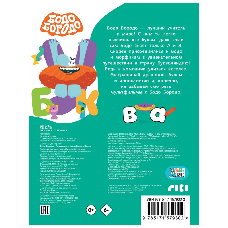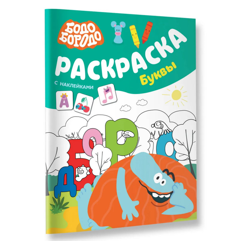 Характеристики Бодо Бородо. Раскраска с наклейками. Буквы.