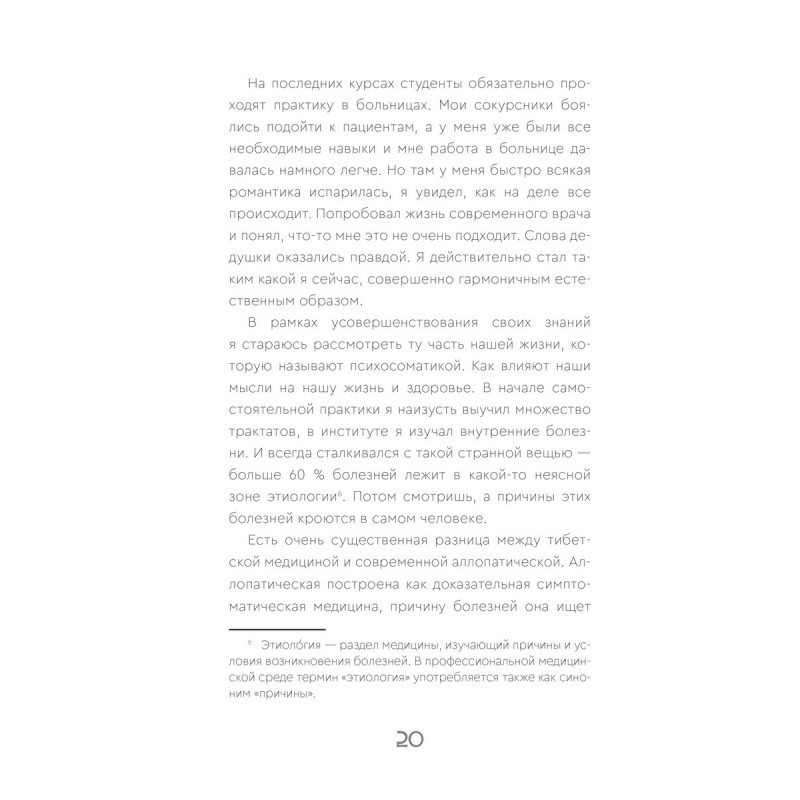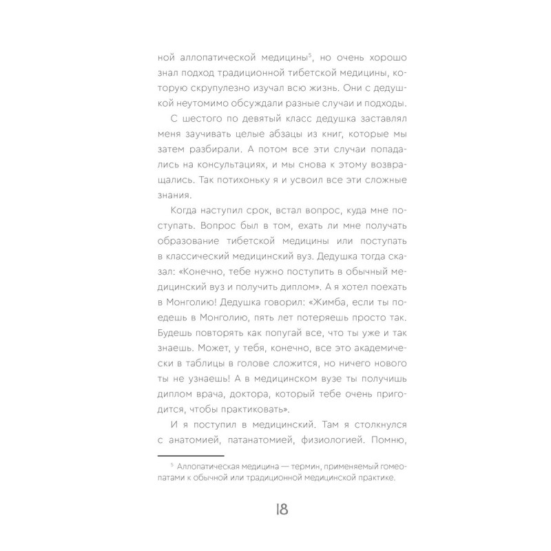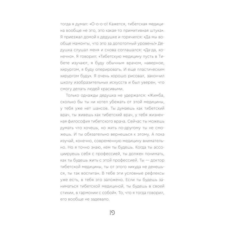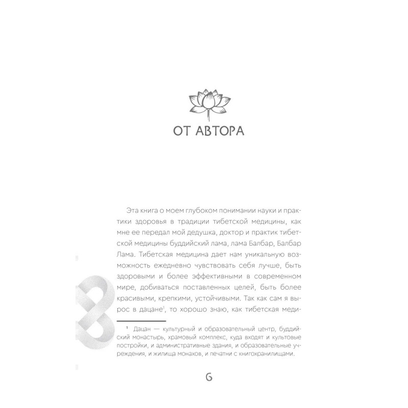 Жимба Данзанов — доктор тибетской медицины, воспитанник буддийского ламы и знаменитого врача тибетской медицины Геше Балбар, основателя клиники "Чжуд-Ши". Лама Балбар с самого раннего детства посвящал своего воспитанника во все тонкости искусства врачевания. Всю жизнь Жимба Данзанов помогал своему легендарному дедушке и является прямым продолжателем его знаний и работы. В книге Жимба Данзанов раскрывает базовые аспекты тибетской медицины и подробно останавливается на ее методах, адаптированных к условиям жизни в 21 веке. Наследие тибетской медицины, подтвержденное и обогащенное открытиями современной науки, помогает людям эффективно поддерживать здоровье и благополучие. Вы узнаете, как познать свою природу, достичь эмоционального и физического баланса, а также как обрести долголетие, разумно распоряжаясь своим телом. Сложные идеи и концепции тибетской медицины объяснены простым языком, а практические рекомендации, данные в этой книге, вы легко сможете внедрить в повседневную жизнь и достичь своих целей.