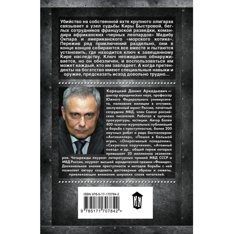 - Продолжение бестселлеров «Лабутены для Золушки» и «Алмазы для Золушки». Переиздание в удобном покете. - Захватывающая история, напоминающая авантюрный голливудский фильм в духе «Джеймса Бонда» или «Никиты». Несколько профессионалов криминала из разных стран схлестнутся в погоне за наследством. Кто выйдет победителем? - Данил Корецкий — мастер детектива, ученый-криминалист и один из самых читаемых российских авторов. Создатель культовой серии книг «Антикиллер», бестселлеров «Рок-н-ролл под Кремлем» и «Оперативный псевдоним». Общий тираж книг Корецкого перевалил за 20 миллионов экземпляров. - Несколько романов автора экранизировано. В 2002 году вышел блокбастер Егора Кончаловского «Антикиллер» с Гошей Куценко в главной роли. - Серия «Шпионы и все остальные. Данил Корецкий».