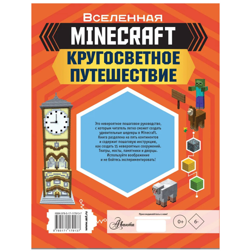 Это невероятное пошаговое руководство, с которым читатель легко сможет создать удивительные шедевры в Minecraft. Книга разделена на пять континентов и содержит пошаговую инструкцию, как создать 15 невероятных сооружений. Театры, мосты, памятники и дворцы. Используйте воображения и не бойтесь экспериментировать!