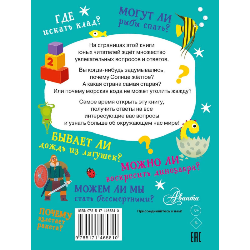 Каждый день мы задаемся тысячей вопросов об окружающем нас мире. Что произойдёт, если весь лёд на планете мгновенно растает? Почему бы людям не говорить на одном общем языке? Как космонавты моются в космосе? Прочитав эту маленькую книгу, вы получите ответы не только на эти вопросы, но и на множество других, которые затрагивают самые разные области наши жизни. Узнайте больше о космосе, географии, истории, физике, химии и биологии. А в следующий раз, когда кто-то из друзей задастся вопросом о ближайшей к нам галактике, будьте уверены, вы сможете дать ответ и на этот вопрос тоже! Для среднего школьного возраста.