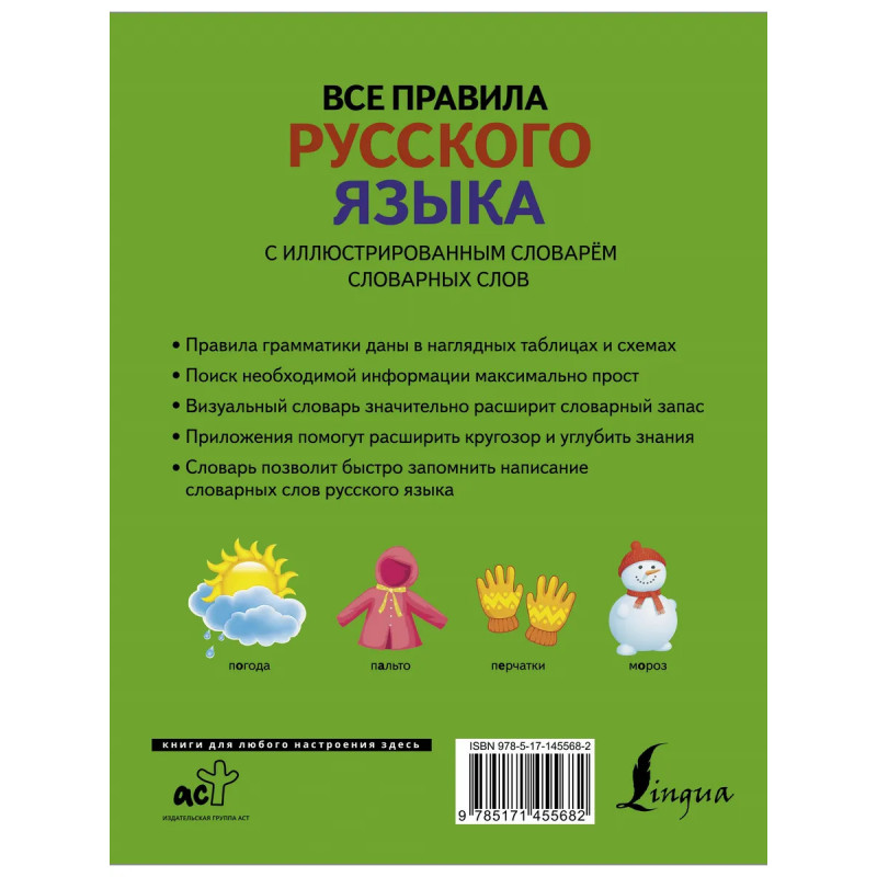 Данная книга поможет грамотно писать и говорить, успешно выполнять домашние задания и готовиться к экзаменам. Пособие состоит из двух частей. В первой части содержатся все правила русского языка. Чёткие схемы и наглядные таблицы помогут эффективно усвоить или повторить любую грамматическую тему. В качестве примеров приводятся отрывки из живой речи и художественной литературы. Во второй части иллюстрированный словарь, где представлены слова, написание которых вызывает трудности. Визуальный принцип подачи материала способствует более быстрому запоминанию правильного написания словарных слов русского языка. Справочник дополнен приложениями, которые помогут расширить кругозор и углубить знания. Издание предназначено для учащихся старших классов, а также для всех, кто хочет освежить свои знания.