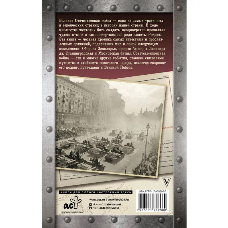 Великая Отечественная война — одна из самых трагичных и героических страниц в истории нашей страны. В ходе множества жестоких битв солдаты неоднократно проявляли чудеса отваги и самопожертвования ради защиты Родины. Эта книга — честная хроника самых известных и прославленных сражений, подаривших мир и покой следующим поколениям. Оборона Заполярья, прорыв блокады Ленинграда, Сталинградская и Московская битвы, Советско- японская вой на — эти и многие другие события, ставшие символами мужества и стойкости советского народа, навсегда сохранят его подвиг, приведший к Великой Победе.