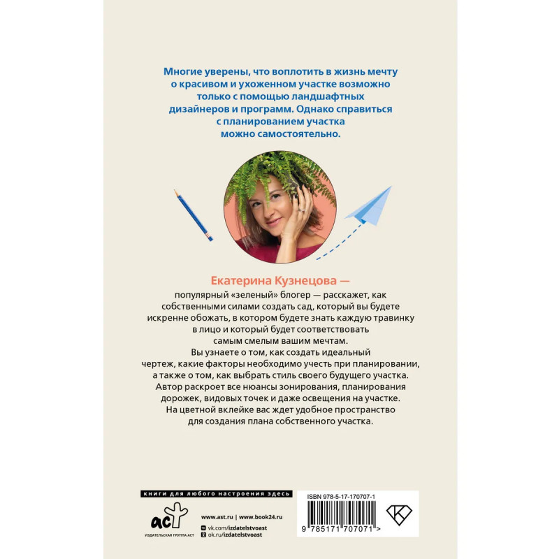 Многие уверены, что воплощение в жизнь такой мечты, как ухоженный, уютный, оригинально оформленный участок, возможно только с помощью специалистов или компьютерных программ. Однако справиться с планированием участка можно самостоятельно. Екатерина Кузнецова — популярный "зеленый" блогер — расскажет, как собственными силами создать сад, который вы будете искренне обожать, в котором будете знать каждую травинку в лицо и который будет соответствовать самым смелым вашим мечтам. Вы узнаете о том, как создать идеальный чертеж, какие факторы необходимо учесть при планировании, а также о том, как выбрать стиль своего будущего участка. Автор раскроет все нюансы зонирования, планирования дорожек, видовых точек и даже освещения на участке. А на цветной вклейке вас ждет удобное пространство для создания плана собственного участка.