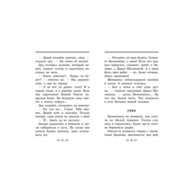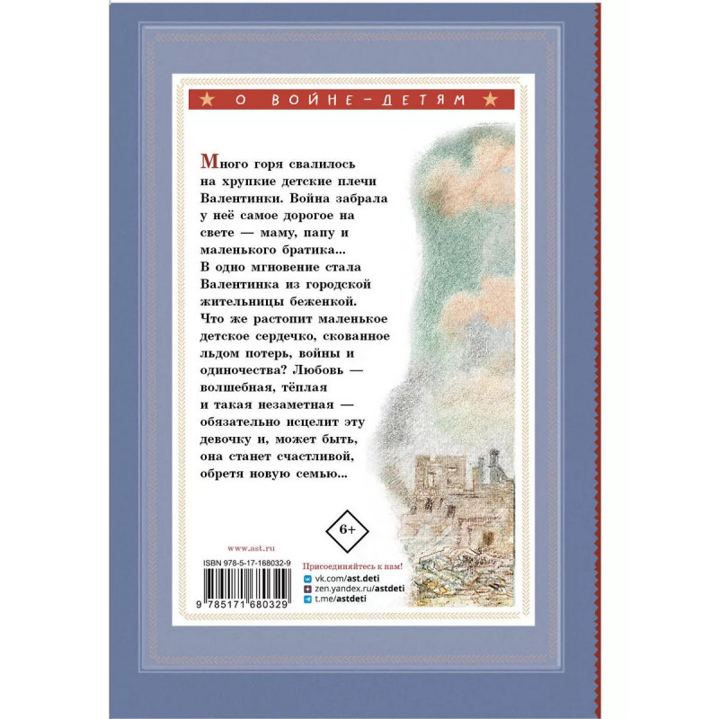 Повесть Л. Воронковой "Девочка из города" была впервые опубликована в 1943 году, в самый разгар Великой Отечественной войны. История о том, как из-за войны маленькая Валентинка осталась сиротой, но совершенно случайно обрела новую маму и новую семью в далёком селе Начаеве, очень полюбилась юным читателям. И не спроста, ведь детская писательница Л. Воронкова очень бережно раскрывает в своей повести трагическую историю одного военного детства и в тоже время даёт понять, что любовь, сочувствие и доброта всегда рядом, даже в самые тяжёлые времена. В 1984 году по повести был снят одноимённый фильм. Для младшего школьного возраста.
