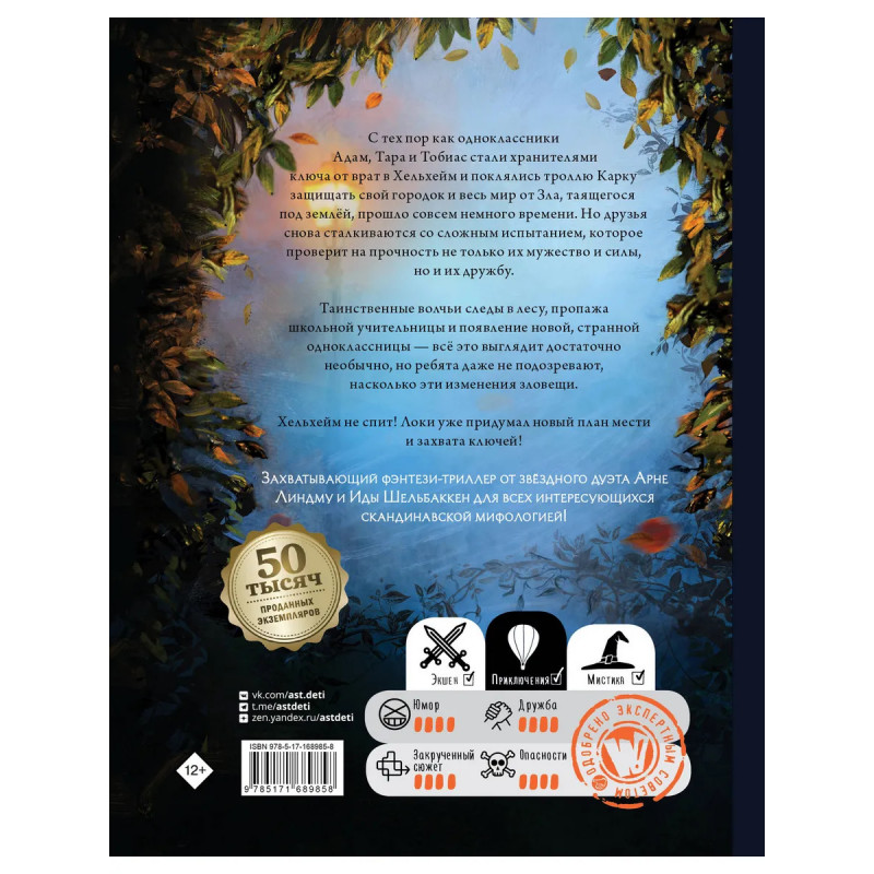 С тех пор как одноклассники Адам, Тара и Тобиас стали хранителями ключа от врат в Хельхейм и поклялись троллю Карку защищать свой городок и весь мир от Зла, таящегося под землёй, прошло совсем немного времени. Но друзья снова сталкиваются со сложным испытанием, которое проверит на прочность не только их мужество и силы, но и их дружбу. Таинственные волчьи следы в лесу, пропажа школьной учительницы и появление новой, странной одноклассницы — всё это выглядит достаточно необычно, но ребята даже не подозревают, насколько эти изменения зловещи. Хельхейм не спит! Локи уже придумал новый план мести и захвата ключей! Захватывающий фэнтези-триллер от звёздного дуэта Арне Линдму и Иды Шельбаккен для всех интересующихся скандинавской мифологией!
