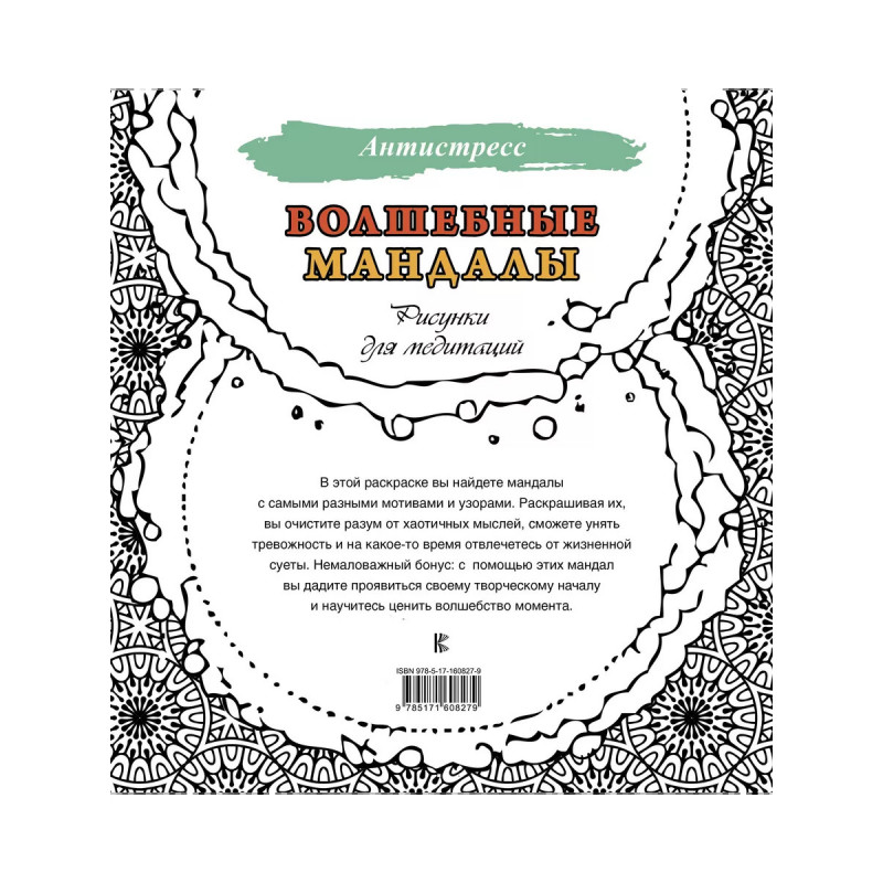 Волшебные мандалы. Рисунки для медитаций. В этой раскраске вы найдете мандалы с самыми разными мотивами и узорами. Раскрашивая их, вы очистите разум от хаотичных мыслей, сможете унять тревожность и на какое-то время отвлечетесь от жизненной суеты. Немаловажный бонус: с помощью этих мандал вы дадите проявиться своему творческому началу и научитесь ценить волшебство момента.