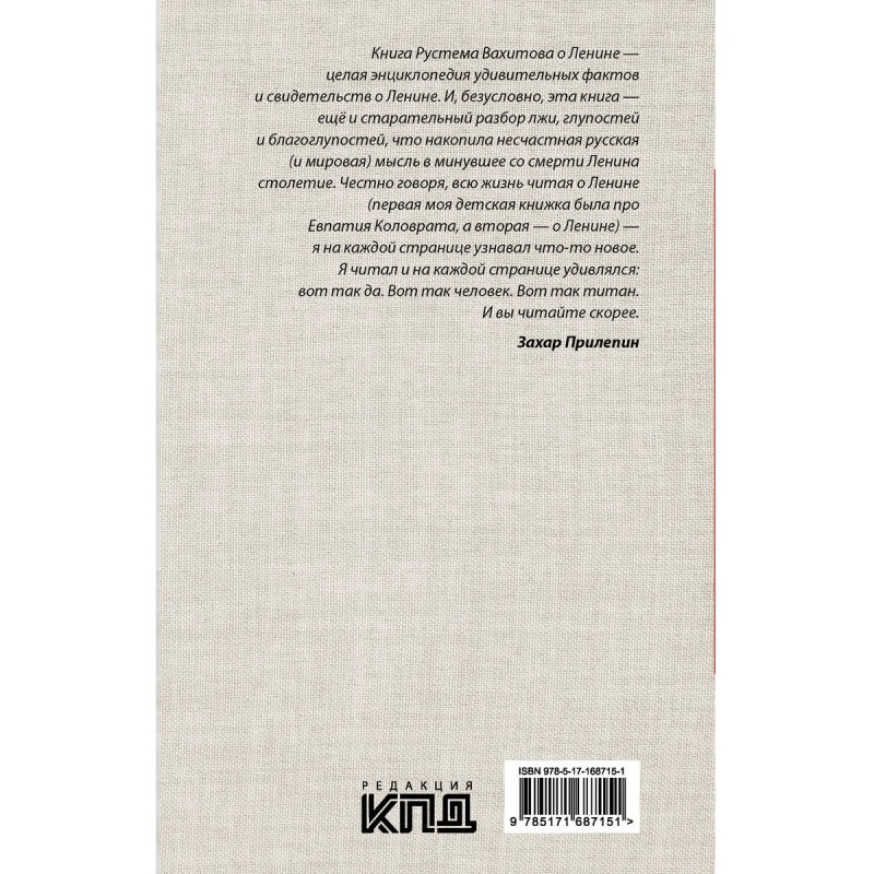 - Новинка редакции писателя Захара Прилепина «КПД»! - Вдумчивый разбор мифов, лжи и спекуляций, связанных с фигурой Владимира Ленина: от самых дремучих заблуждений до историй, которые за чистую монету принимали миллионы людей. - Книга-открытие, на страницах которой даже искушенный читатель найдет ранее неизвестные детали биографии и общественной деятельности вождя мирового пролетариата. - Рустем Ринатович Вахитов — философ, публицист, писатель, идеолог современного левого евразийства, создатель сайта «Красная Евразия» и одноименного канала, лауреат премии «Слово к народу». В 2017 году вышла его книга «Революция, которая спасла Россию», выдержавшая два издания. - Серия «Nonfiction специального назначения».