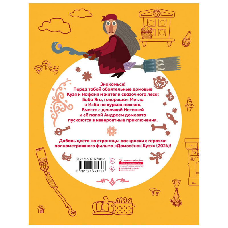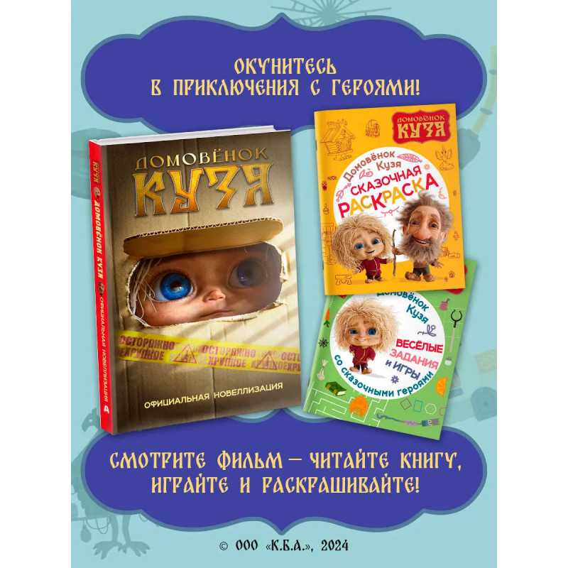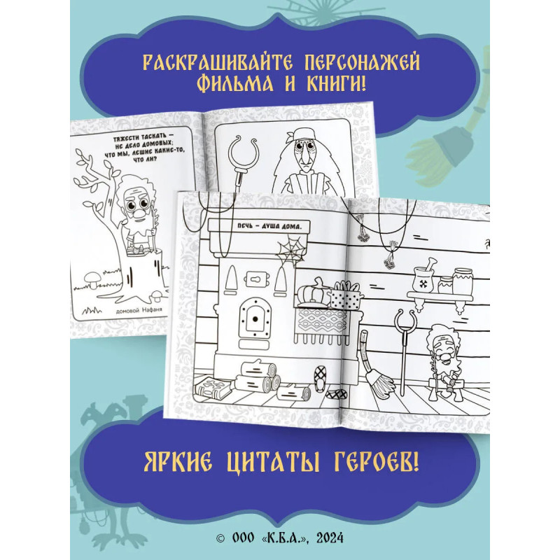 Знакомься! Перед тобой обаятельные домовые Кузя и Нафаня и жители сказочного леса: Баба Яга, говорящая Метла и Изба на курьих ножках. Вместе с девочкой Наташей и её папой Андреем домовята пускаются в невероятные приключения. Добавь цвета на страницы раскраски с героями полнометражного фильма "Домовёнок Кузя" (2024)!