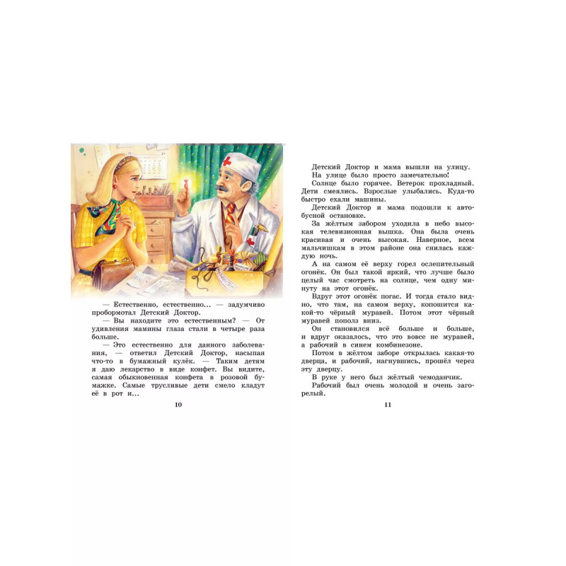 Софья Леонидовна Прокофьева (1928 г.) детская писательница-сказочница, драматург, сценаристка. Автор более 30 книг для детей, среди которых "Лоскутик и Облако", "Приключения жёлтого чемоданчика", "Неизвестный с хвостом", "Про Машу и Ойку" и другие. По многим сказкам С. Прокофьевой были сняты мультфильмы. Сказочная повесть "Приключения жёлтого чемоданчика" впервые была опубликована в 1965 году. Главный герой повести мальчик Петька. Трусишка, он никогда не выходит из дома один, а в его комнате и ночью и днём горит электрический свет. И кто знает, как бы закончилась эта страшная история, если бы не Детский Доктор! Он поможет мальчику посмотреть в лицо своим страхам, а значит преодолеть их. Иллюстрации в книге современной художницы Александры Лиукконен. Для младшего школьного возраста.