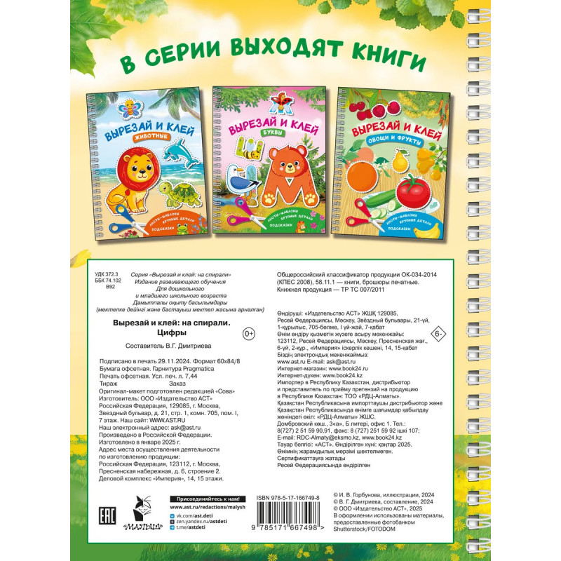 Характеристики Вырезай и клей. Цифры.