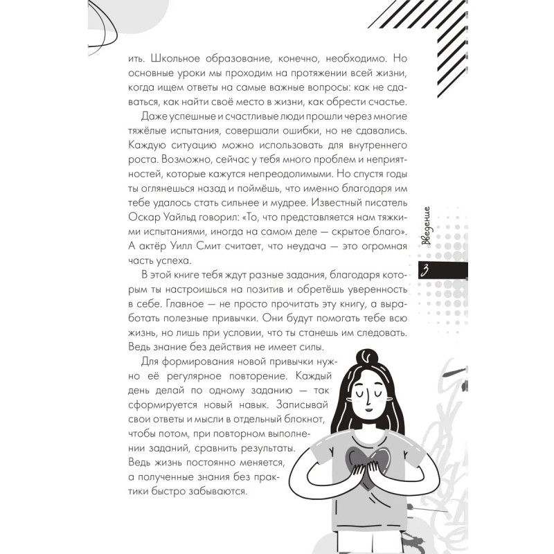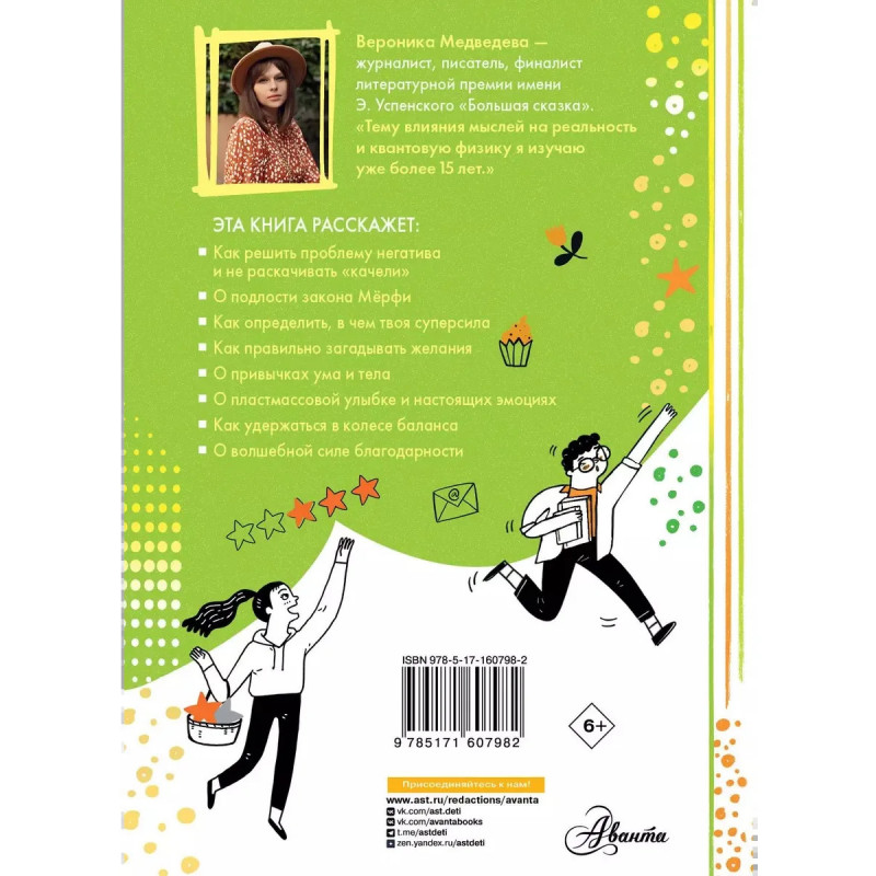 Если вы не верите, что можно заменить черную полосу в своей жизни на белую, искренне полюбить нелюбимый школьный предмет, что все желания когда-то исполняются или возможно даже принять свою внешность за вполне симпатичную, то вам просто обязательно надо прочитать эту книгу. В вашей голове, а соответственно и вашей жизни, все встанет на свои места и произойдут чудесные превращения. Надо только выполнить несколько условий И уверенность, принятие мира, любовь и уважение к самому себе произведут потрясающий эффект, который удивит не только вас, но и окружающих. Для среднего и старшего школьного возраста.