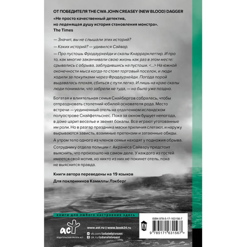 - Для поклонников романа Люси Фоли «Список гостей», фильмов «Госфорд-парк» и «Торжество» и всех, кто обожает качественный скандинавский нуар. - Исландка Эва Бьёрг Айисдоттир — обладательницы премий CWA JOHN CREASEY NEW BLOOD DAGGER, Storytel Award for Best Crime Novel и Blackbird Award for Best Icelandic Crime Novel. - Книги писательницы переведены на 19 языков. - «История, в которой сериал “Наследники” встречает “И никого не стало”» — Amazon.