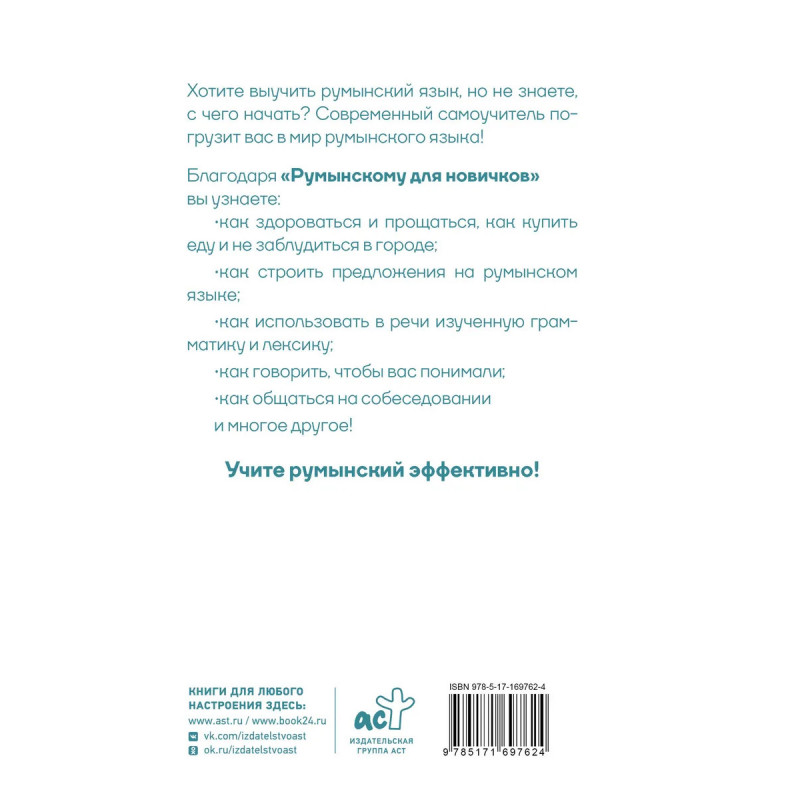 Начните изучать румынский язык с помощью этого пособия! Вся теория разделена на удобные для запоминания части и сопровождается большим количеством упражнений, ответы к которым приводятся в конце пособия. В каждом уроке представлена полезная лексика, которая используется в текстах и диалогах на актуальные бытовые темы. Самоучитель подойдет всем, кто только начинает учить румынский язык самостоятельно, с преподавателем или на курсах.
