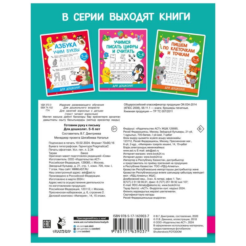 Характеристики Готовим руку к письму. Для дошколят. 5-6 лет.