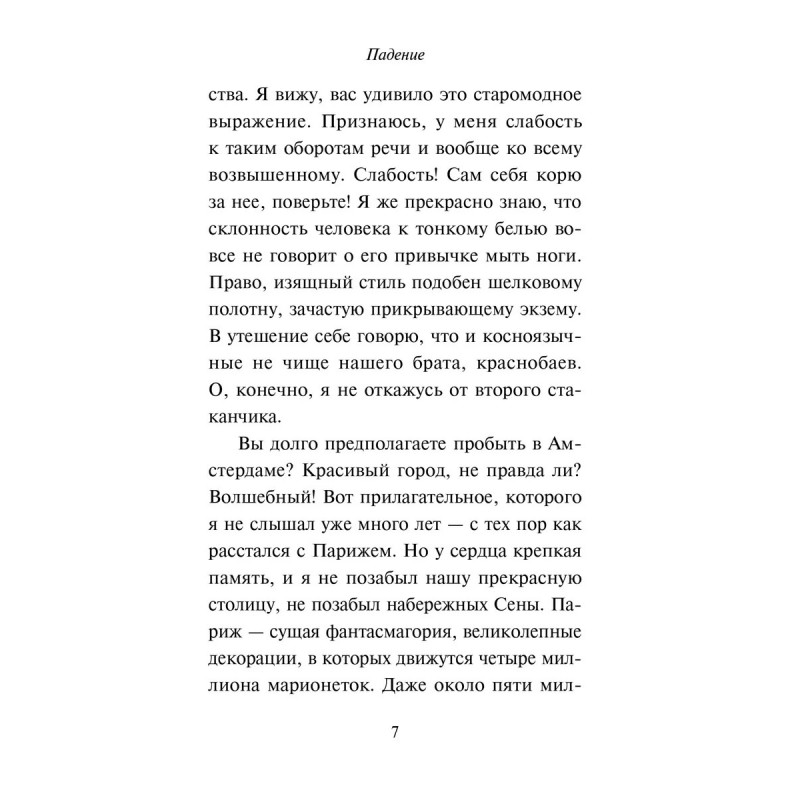 От автора романов Посторонний и Чума. В своей последней законченной перед гибелью повести Альбер Камю обнажает самые страшные человеческие пороки, находит оправдание для продолжения привычной жизни и пытается найти ответ на вечный вопрос В чем смысл человеческого существования?