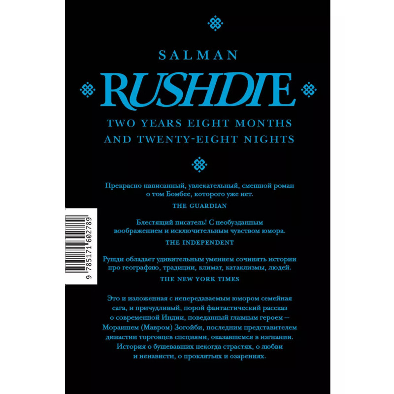 Два года, восемь месяцев и двадцать восемь дней. Два года восемь месяцев и двадцать восемь ночей" - роман Салмана Рушди, лауреата Букеровской премии, автора бестселлеров Дети полуночи, Стыд и Клоун Шалимар. После страшной бури, обрушившейся на Нью-Йорк, в городе начинают происходить странные вещи, и весь мир меняет свой облик. Садовник обнаруживает, что умеет левитировать. Автор комиксов просыпается в своей спальне и попадает в кротовую нору. Ребенок получает способность распознавать коррупционеров, лишь коснувшись их. Всех этих людей объединяет то, что их предками были причудливые, капризные и распутные существа, известные как джинны - они живут в высшем мире снов, отделенном от нашего завесой. Много веков назад Дунья, принцесса джиннов, полюбила известного философа Ибн Рушда. Они произвели на свет огромное количество детей, не подозревающих о своих фантастических способностях; они расселились по всему миру, ожидая своего часа. Когда целая орда джиннов под предводительством Великого Ифрита Зумурруда вторглась на Землю, Дунья и ее потомки встали на за