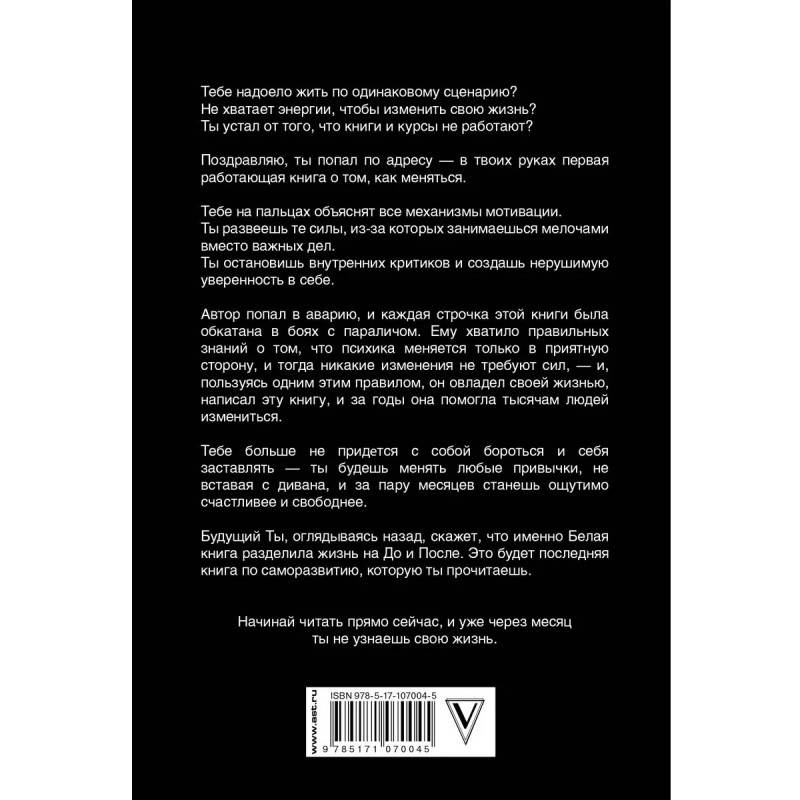 Самая запрашиваемая книга Рунет. По слухам, эту книгу рекомендуют к прочтению Павел Дуров и Роман Абрамович. Небанальная книга про то, как стать счастливым, не вставая с дивана. Автор пережил аварию, но научился быть счастливым вне зависимости от обстоятельств, и теперь делится этим с читателями.