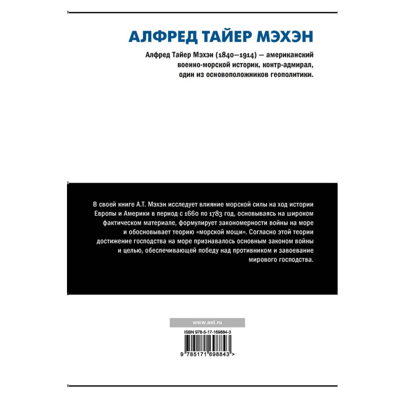 — Алфред Тайер Мэхэн — известный американский военно-морской историк. — «Влияние морской силы на историю» — одна из самых влиятельных книг по военно-морскому делу. — Исследуя влияние морской силы на ход истории в XVII-XVIII веках, Мэхэн сформулировал принципы, которые определяли ход боевых действий на море в течение всего XX века.