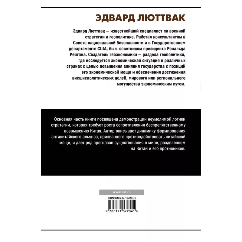 Китай и логика стратегии. Эдвард Люттвак - известнейший специалист по военной стратегии и геополитике. Работал консультантом в Совете национальной безопасности и в Государственном департаменте США, был советником президента Рональда Рейгана. Создатель геоэкономики - раздела геополитики, где исследуется экономическая ситуация в различных странах с целью повышения влияния государства с позиций его экономической мощи и обеспечения достижения внешнеполитических целей, мирового или регионального могущества экономическим путем. Основная часть книги посвящена демонстрации неумолимой логики стратегии, которая требует роста сопротивления беспрепятственному возвышению Китая. Автор описывает динамику формирования антикитайского альянса, призванного противодействовать китайской мощи, и дает ряд прогнозов существования в мире, разделенном на Китай и его противников.