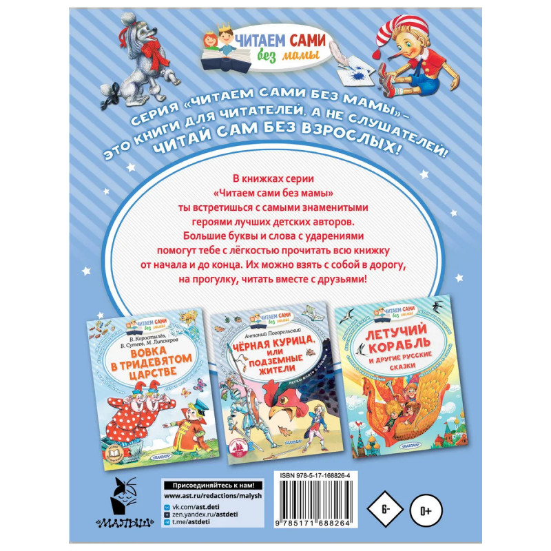 Книги серии «Читаем сами без мамы» — это уникальное собрание золотого фонда отечественной литературы! Сказки, стихи рассказы с красочными иллюстрациями понравятся каждому малышу! Все произведения серии входят в обязательную программу по чтению, а крупный шрифт и ударения помогут ребёнку самостоятельно познакомиться с шедеврами детской мировой литературы. В этой книге юные читатели познакомятся с известной волшебной сказкой Алексея Толстого. Ребята познакомятся с добрыми и отважными героями, отправятся в увлекательные приключения и научатся доброте, дружбе и взаимопомощи. Лучший подарок для юного читателя!