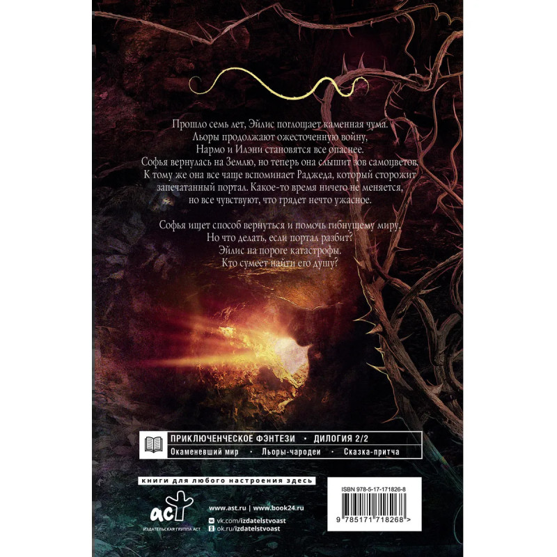 – Продолжение романа «Сны Эйлиса. Игра льора» в постапокалиптическом мире Эйлис. – Взрослая готическая сказка с атмосферой старых фильмов «Бесконечная История», «Возвращение в Страну Оз» и «Лабиринт», мрачных и мистических. – Попаданка, которая наконец вернулась домой, стремится обратно в Эйлис, чтобы спасти его от гибели. – История о силе духа, столкновении личных интересов и долга перед целым миром.