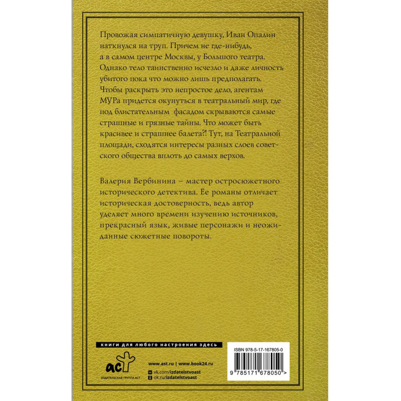 Провожая симпатичную девушку, Иван Опалин наткнулся на труп. Причем не где-нибудь, а в самом центре Москвы, у Большого театра. Однако тело таинственно исчезло и даже личность убитого пока что можно лишь предполагать. Чтобы раскрыть это непростое дело, агентам МУРа придется окунуться в театральный мир, где под блистательным фасадом скрываются самые страшные и грязные тайны. Что может быть красивее и страшнее балета?!.. Тут, на Театральной площади, сходятся интересы разных слоев советского общества вплоть до самых верхов.