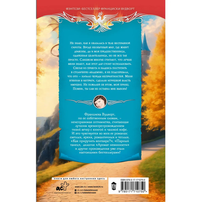 - Долгожданная новинка от признанного мастера романтического фэнтези! - Первая книга дилогии о драконах. - Франциска Вудворт, по ее собственным словам, — неисправимая оптимистка, считающая лучшим времяпрепровождением тихий вечер с книгой и чашкой кофе. И это чувствуется во всех ее романах: светлых, ярких, романтичных и теплых. - Серия «Фэнтези-бестселлеры Франциски Вудворт».