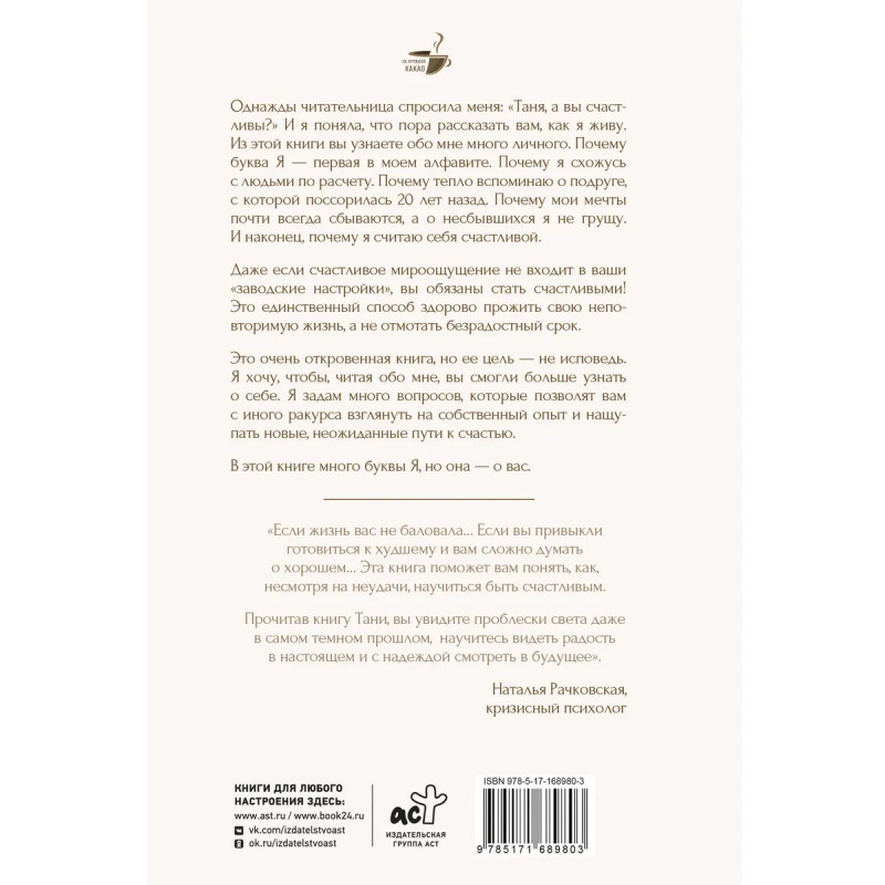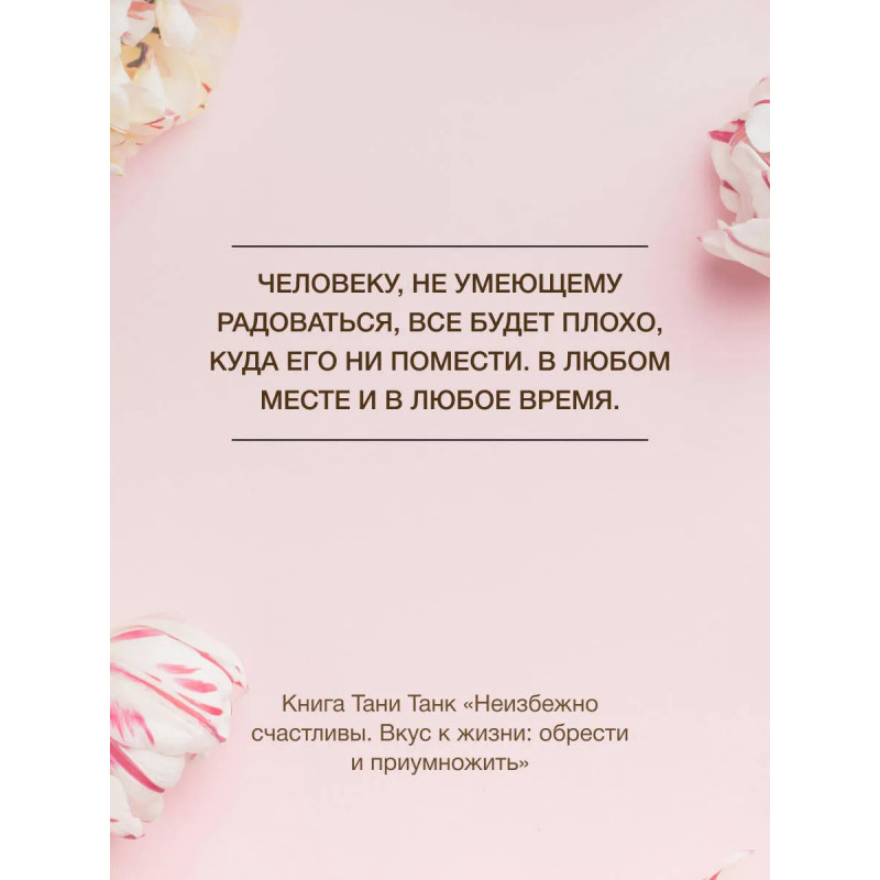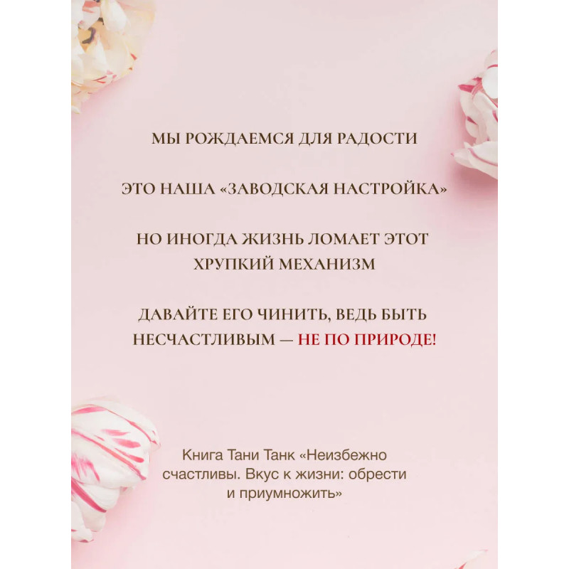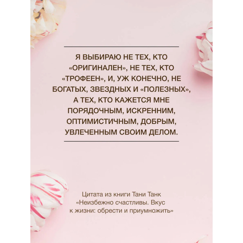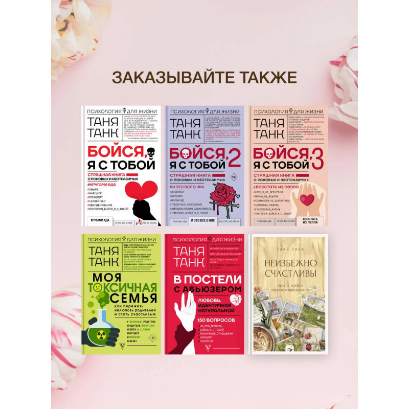 У каждого из нас – свой путь, полный тернистых троп, сожалений о несбывшемся, разрушенных надежд, трагедий и потерь. Как найти свой рецепт счастья и «приготовить» по нему жизнь? Журналист, блогер и автор трилогии о ловушках абьюза «Бойся, я с тобой» Таня Танк не понаслышке знает, как нездоровые отношения, в том числе и с собой, омрачают жизнь, превращая ее в полосу препятствий. О том, как смотреть на мир без розовых очков, но при этом все еще видеть ее яркой и насыщенной, Таня Танк расскажет на примере своей жизни. В ее историях читательницы найдут себя, смогут переосмыслить собственный опыт и получить ценную подсказку там, где она сейчас больше всего им необходима. Здоровая любовь, крепкая дружба, личные границы, работа с эмоциями, повседневные радости и забота о себе – истории из книги станут для вас ориентиром в поисках своего особенного счастья.