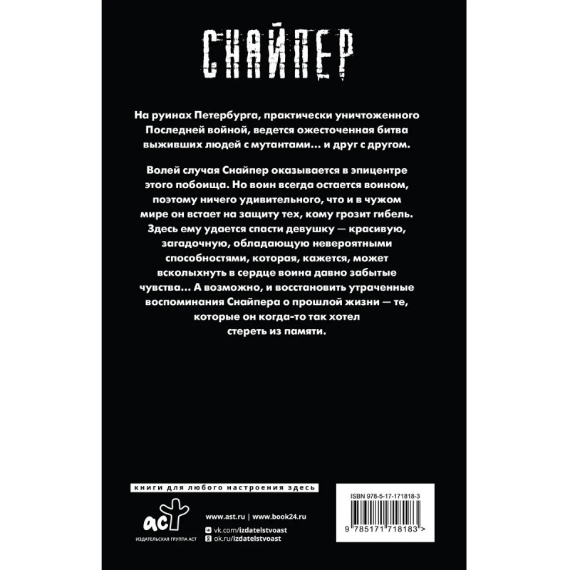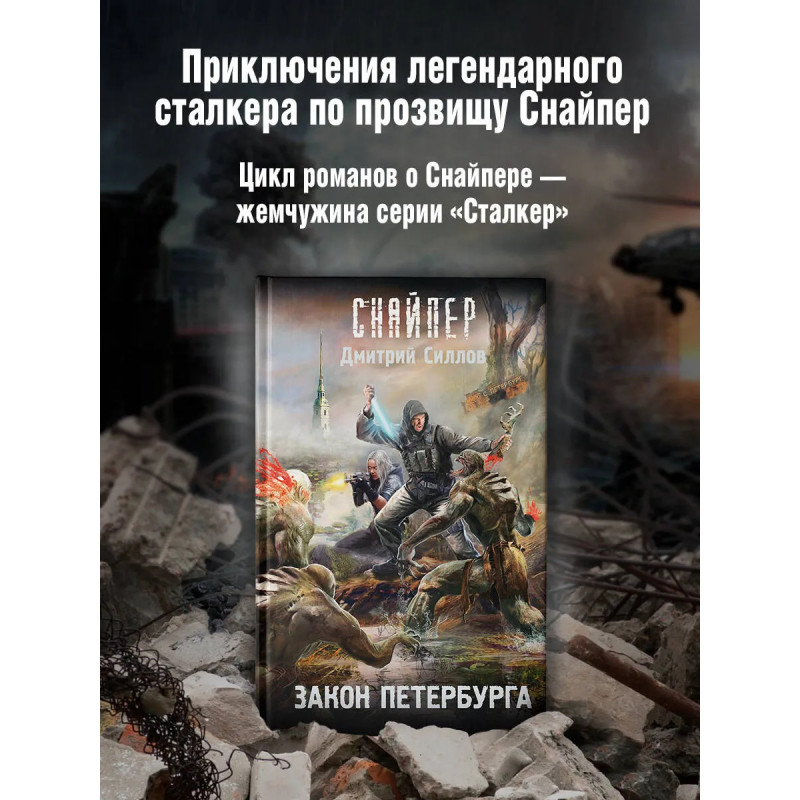 – Переиздание историй о Снайпере, культовом персонаже серий “Сталкер” и «Кремль 2222», в обновленном оформлении. – Ранее роман издавался под названием «Кремль 2222. Петербург». – Боевая фантастика в постапокалиптическом мире, кишащем опасными тварями и раздираемом борьбой между людьми.