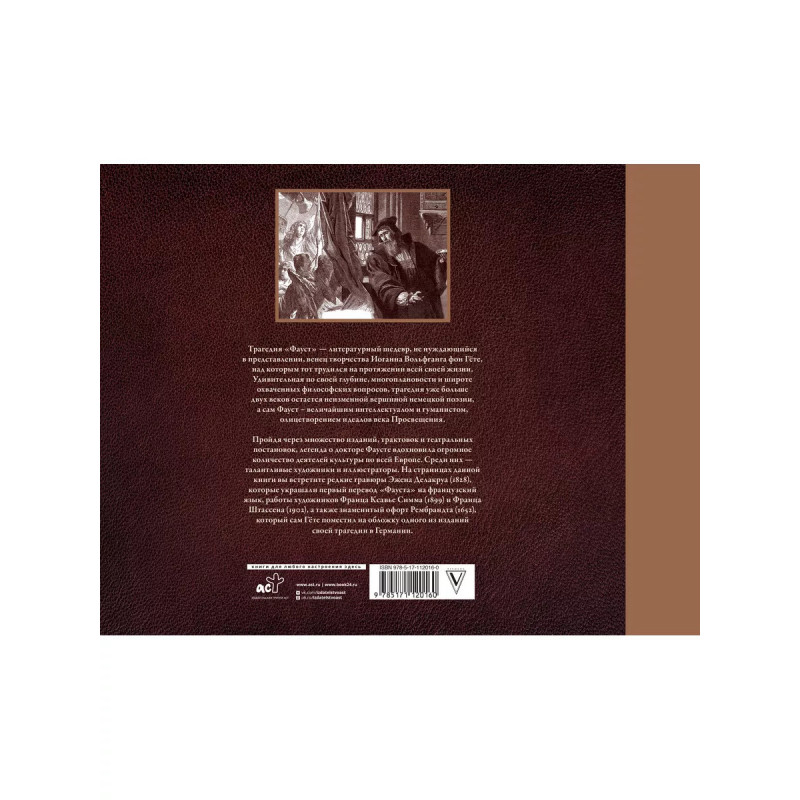 Фауст с иллюстрациями Эжена Делакруа. "Фауст" - литературный шедевр, не нуждающийся в представлении, венец творчества Иоганна Вольфганга фон Гёте, над которым тот трудился на протяжении всей своей жизни. Удивительная по своей глубине, многоплановости и широте охваченных философских вопросов, трагедия уже больше двух веков остается неизменной вершиной немецкой поэзии, а сам Фауст - величайшим интеллектуалом и гуманистом, олицетворением идеалов века Просвещения. Пройдя через множество изданий, трактовок и театральных постановок, легенда о докторе Фаусте вдохновила огромное количество деятелей культуры по всей Европе. Среди них - талантливые художники и иллюстраторы. На страницах данной книги вы встретите редкие гравюры Эжена Делакруа (1828), которые украшали первый перевод "Фауста" на французский язык, работы художников Франца Ксавье Симма (1899) и Франца Штассена (192), а также знаменитый офорт Рембрандта (1652), который сам Гёте поместил на обложку одного из изданий своей трагедии в Германии.