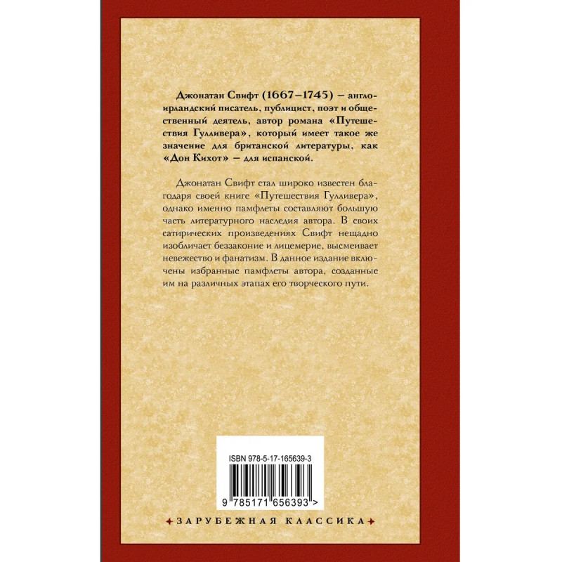 — Признанная классика английской литературы. — Джонатан Свифт — блестящий английский сатирик. В первую очередь он известен как автор романа «Путешествия Гулливера», но большую часть его литературного наследия составляют памфлеты — более короткие и злободневные сатирические произведения. — В данное издание вошла «Сказка бочки» — первый крупный опыт Свифта в области сатиры. — В своих сатирических произведениях Свифт нещадно обличал беззаконие и лицемерие, высмеивал невежество и фанатизм, критиковал все, что считал устаревшим, изжившим себя или откровенно вредным.