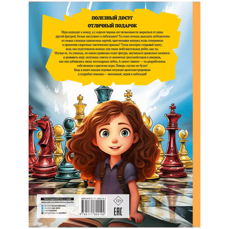 Шахматы для детей. Игра подходит к концу, а у короля черных нет возможности закрыться от шаха другой фигу- рой. Белые наступают и побеждают! Ты тоже хочешь выходить победителем из самых сложных шахматных партий, просчитывая наперед ходы соперников и применяя секретные тактические приемы? Тогда поскорее открывай книгу, ведь она подготовлена именно для таких любознатель- ных ребят, как ты. Изучая ее, ты узнаешь, по каким правилам ходит фигура, научишься правиль- но начинать и развивать игру, получишь советы от именитых гроссмейстеров и увидишь, как они добивались своих легендарных побед. А самое главное - ты разработаешь собственную стратегию игры. Поверь: скучно не будет! Ведь в книге каждая игровая ситуация проиллюстрирована и подробно описана - запоминай, играй и побеждай! Для среднего и старшего школьного возраста.